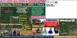 Whalen Realty & Auction, Ltd is hosting an auction featuring over 58 acres located within the Anthony Wayne school district. The auction presents a unique opportunity for buyers interested in real estate in a desirable area.