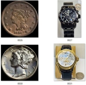 The Estate Auctioneer has announced an auction event featuring a partial catalog of watches, knives, silver coins, antiques, and collectibles. The auction will open at 7:30 PM tonight.